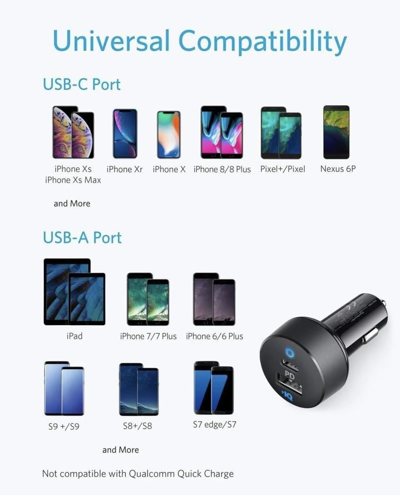 شاحن يو اس بي من النوع سي بقدرة 18 واط وشحن بمنفذ باور اي كيو 2.0 بقدرة 15 واط مجتمعين للشحن في نفس الوقت لجهازين حتي 2.5 مرة أسرع من شاحن القابس العادي